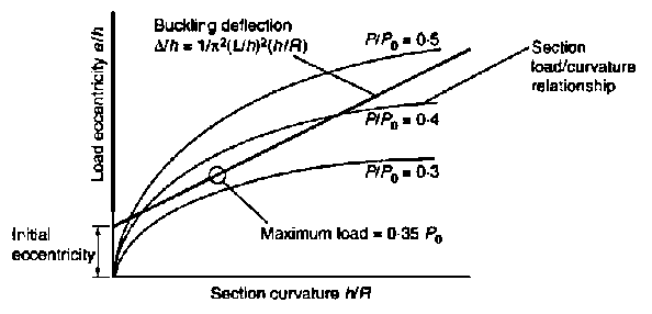 18. As an alternative, both the buckling deflection and the section strength could be calculated on the basis of elastic theory. This would be more logical and appropriate, as buckling usually occurs at stresses which are in the elastic range, so an elastic analysis would probably give better results than plastic theory. However, the results would still be conservative and concrete designers would need to relearn elastic theory, which is distinctly unfashionable among present-