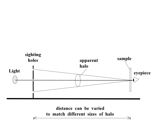 When a point source of light is viewed through a cloud of small drops or particles, coloured rings are seen around it and the radius of these varies inversely with the average size of the particles. Young took advantage of this effect to make an ingenious instrument called the eriometer, which he used to measure the size of very small particles.